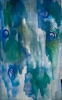 After working with shells brought from Cyprus as well as the evil eye symbol. I created prints which then lead to experimenting with collaging using Photography, digital drawing as well as watercolour. Using these as a base, I introduced snapshots of figures centred around beach imagery; using oil bars to paint the figures to create a visceral representation. Scale is crucial to my artistic process, as I aim to create an immersive experience for viewers, transporting them into my world and experience.